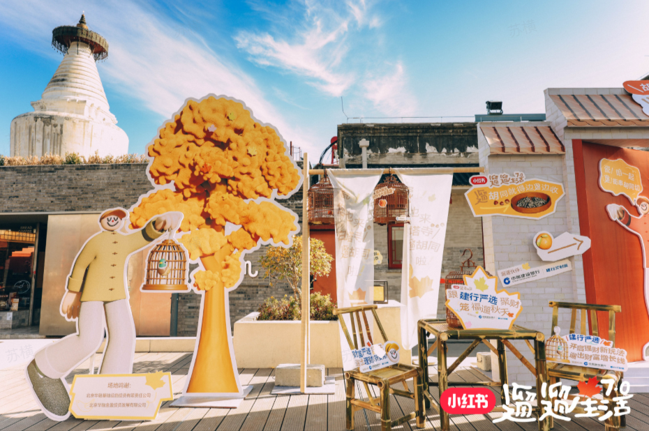 又如中国建设银行与小红书“遛遛生活”IP合作,结合年轻人喜爱的Citywalk慢生活场景,在北京白塔寺胡同打造“遛遛街道”体验活动。一方面将品牌融入胡同生活的烟火气氛中,引导用户沉浸式体验城市生活;另一方面则将建行严选相关权益与当地商户联动,通过消费场景实现服务触达,在活动期间获得超过2.3亿次曝光(小红书数据中台2025年12月数据),也完成了从品牌好感到用户转化的连接。
